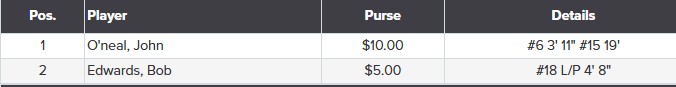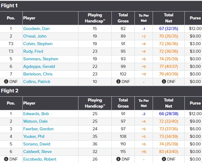 VERY LIGHT TURN OUT TODAY FOR SUCH A NICE DAY. SCRAMBLE NEXT WEEK, SO I HOPE MORE GOLFERS COME! WE HAVE A FEW AWAY GAMES COMING FOR THOSE WHO WISH TO JOIN, SO PLEASE START GIVING BOB EDWARDS THE MONEY AS SOON AS YOU CAN!